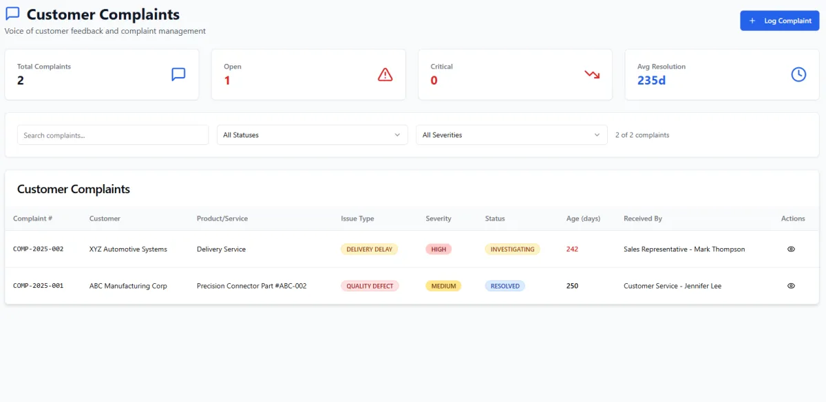 Capture, analyze, and resolve customer complaints quickly and effectively.